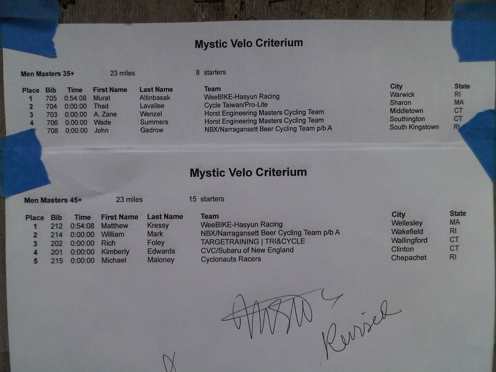 2011 Mystic Velo Criterium Results 35+/45+